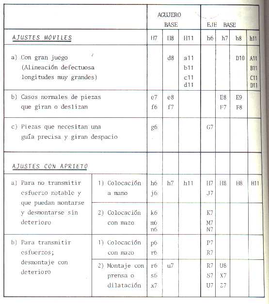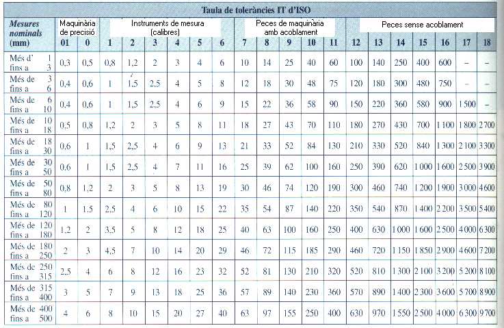 Taula ajustos en funció de la tolerància