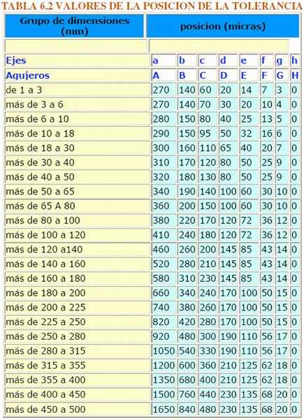 Taula de posició de les toleràncies